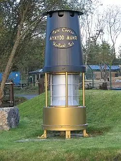 ![]() A giant miner's lamp sculpture at the entrance to Mynydd Mawr Woodland Park in Tumble | |