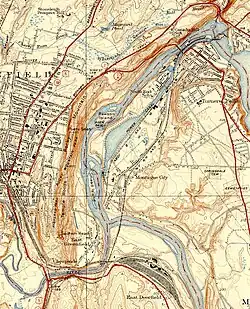 The Turners Falls Canal, also historically known as the Montague Canal, was a canal along the Connecticut River in Montague, Massachusetts. It was reconstructed in 1869.