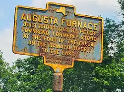 In 1779 the rebel government built the Continental Road from Eagle Valley through the present-day village of Tuxedo Park to what is now Route 17 near Warwick Brook Road. The first industry in Tuxedo was the Augusta Forge at the falls on the Ramapo River, founded by Solomon Townsend in 1783, soon after the end of the war.