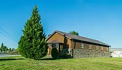The Twizel events centre was built in 2001. It is located at the Market Place in the centre of town. The events centre includes a sports hall, community room plus kitchen and a theatre hall.[74] It never received a Code Compliance Certificate. It was at risk of being closed down in 2021 with the discovery of asbestos and other safety concerns such as broken ventilation systems, improperly installed fire dampers, concerns with theatre seating, lack of seismic restraints, non-compliant fire safety equipment, non-functioning emergency lighting, and a locked fire exit.[75] Mackenzie mayor Graham Smith said of the building “I really want to see this building put right. We need to address it".[75][76]