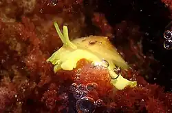 Tylodina fungina, commonly known as the yellow umbrella slug or the mushroom sidegill, is a species of sea snail or false limpet, a marine opisthobranch gastropod mollusk in the family Tylodinidae.[2]