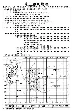 28 September, Taiwan Central Weather Bureau's Maritime Typhoon Warning