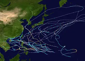 | 21 systems | February 18 – December 16 | 280 km/h (170 mph) | 886 mbar (886 hPa; 26.2 inHg) | |||||