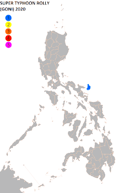- ^ "Severe Weather Bulletin #14 for Super Typhoon 'Rolly' (Goni)" (PDF). PAGASA. November 1, 2020. Archived from the original (PDF) on April 3, 2015. Retrieved November 1, 2020. Alt URL