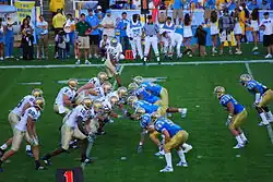 The UCLA Bruins football program represents the University of California, Los Angeles, in college football as members of the Big Ten Conference at the NCAA Division I Football Bowl Subdivision (FBS) level. The Bruins play their home games off campus at the Rose Bowl in Pasadena, California.