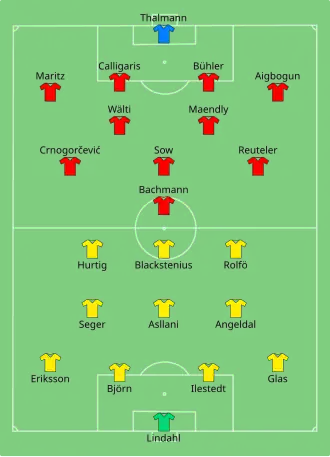 - ^ a b "Tactical Line-ups – Sweden v Switzerland" (PDF). UEFA. Union of European Football Associations. 13 July 2022. Archived from the original (PDF) on July 13, 2022. Retrieved 13 July 2022.