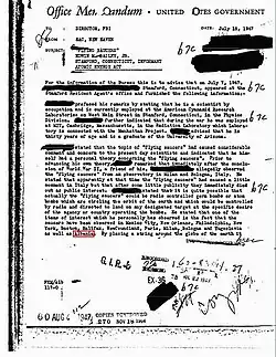 3. ^ "Project 1947: Ghost Rocket Chronology – 18 July, 1947 FBI Memo Re: Flying Saucers #1". www.project1947.com. Retrieved 2023-05-16.