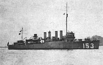USS Bernadou (DD–153) was a Wickes-class destroyer in the United States Navy during World War II. She was named for Commander John Bernadou. Bernadou was launched on 7 November 1918 by William Cramp & Sons Ship and Engine Building Company, Philadelphia. The ship was sponsored by Miss Cora Winslow Bernadou, Commander Bernadou's sister. The destroyer was commissioned on 19 May 1919.