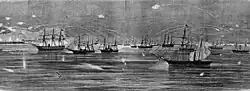 In 1863 USS Bienville was transferred to the Gulf of Mexico, where she continued her blockading work. She supported the capture of the entrances to Mobile Bay, Alabama on August 5, 1864. The USS Princess Royal and Bienville were stationed off the coast of Texas blockading Galveston. On the night of February 7, 1865, the two gunboats sent a boat party into Galveston Bay, Texas to seize two schooners loaded with cotton. The actual prize sought was the destruction of Wren, a ship built by Laird, Son & Co. of Birkenhead (no. 317), along with sister ship (no. 318) the Lark, for Fraser, Trenholm and Company. The Wren had run aground February 6, 1865, but was freed, narrowly escaping capture, and moored inside Galveston Harbor. The schooners Pet, with 256 bales of cotton on board, and Annie Sophia, with 220 bales, were anchored near the main channel at Fort Point. Acting Ensign George French was dispatched with twenty seamen and three officers to destroy the Wren and capture the schooners. Successful in capturing the schooners, they were not able to get to the Wren.[1]