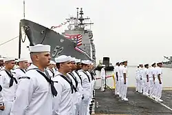 Crew members manning the ship during Bunker Hill's commissioning ceremony