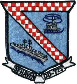 De Haven received five battle stars for her service in World War II. In Korea, she received another six stars and a Navy Unit Commendation.[1] De Haven received Armed Forces Expeditionary Medals for service relating to Vietnam in 1962, 1963 and 1964 as well as Vietnam Service Medals during every year from 1965 to 1971.[7] Combat Action Ribbons were awarded for service 25 August 1967, 6–7 September 1967 and 13 September 1967.[7] A Navy Unit Commendation was awarded to De Haven and her crew for service 15 June 1966 to 20 August 1968.[7]