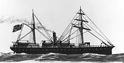 Cornelius and Richard Poillon built Onward at their shipyard at the foot of Bridge Street in Brooklyn, New York. She was launched into the East River on March 28, 1863.[1] She was purchased by the US Navy from the Poillons on 14 September 1863 for $190,000.[2] She was commissioned as USS Grand Gulf on 28 September 1863, Comdr. George Ransom in command. Grand Gulf stood to sea from New York on 11 October and 9 days later joined the North Atlantic Blockading Squadron off Wilmington, North Carolina. Her two exits to the sea at Beaufort and the Cape Fear River made Wilmington one of the most important and most difficult to blockade of all Confederate ports. She remained on blockade duty there, with intervals for repair at the New York and Norfolk Navy Yards, until 4 October 1864.