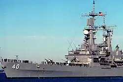 USS Mississippi (CGN-40), a Virginia-class nuclear-powered guided-missile cruiser, was the fourth ship of the United States Navy named in honor of the 20th state admitted to the Union. Her keel was laid down by the Newport News Shipbuilding and Drydock Company at Newport News, Virginia, on 22 February 1975. She was launched on 31 July 1976. The ship was commissioned on 5 August 1978 by Jimmy Carter, then serving as the 39th president of the United States. Early deployment included escorting the carrier USS Nimitz. She also was deployed in 1989 as a response to the capture and subsequent murder of U.S. Marine Corps Colonel William R. Higgins by terrorists.[1]