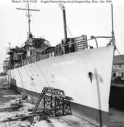 USS Peoria (PF-67), a Tacoma-class frigate, was the third ship of the United States Navy to be named after Peoria, Illinois.
