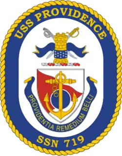 USS Providence (SSN-719), a Los Angeles-class submarine, is the fifth vessel of the United States Navy to be named for Providence, Rhode Island. The contract to build her was awarded to the Electric Boat Division of General Dynamics Corporation in Groton, Connecticut on 16 April 1979 and her keel was laid down on 14 October 1982. She was launched on 4 August 1984 sponsored by Mrs. William F. Smith, and commissioned on 27 July 1985.[3][4]