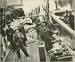 The explosion was terrible, breaking the beams of the spar deck, tearing open the waterways, ripping off starboard forechannels, and breaking fore-topmast.