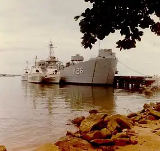 ![]() Snohomish County with US Coast Guard Point-class cutters tied up alongside at Da Nang, Vietnam, 24 July 1965