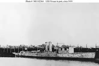 Apparently difficult to maintain, Vivace was decommissioned and simultaneously stricken from the Navy List on 28 September 1918, six and a half weeks before the end of the war. She was sold as "junk"[2] to Marvin Briggs, Inc., of Brooklyn, New York, on 16 April 1919.