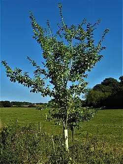 'Wingham', while still unnamed clone FL493,[7] was crossed c.2015, as female parent, with old field elms surviving near Tonge Mill, Sittingbourne, Kent.[8] Four inoculated seedlings "proved asymptomatic or had 2% or less of wilting", a result described in 2019 as "significant ... as it means British-bred elm seedlings with very high tolerance or resistance have for the first time been identified".[9] Kew described these clones, propagated and planted on a trial site in Wateringbury, as "promising" (2024).[10][9]