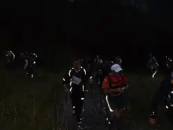 - Runners must carry a minimum of equipment for safety reasons. This includes a waterproof jacket, warm clothing, food and water, whistle, mobile telephone, survival blanket and two head lamps.