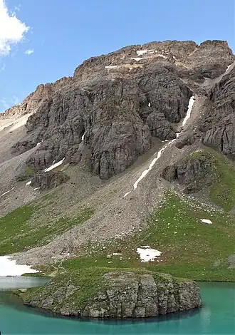 Ulysses S Grant Peak is a 13,767-foot-elevation (4,196-meter) mountain summit located on the shared boundary of San Juan County with San Miguel County, in southwest Colorado, United States.[3] It is situated eight miles west of the community of Silverton, on land managed by San Juan National Forest and Uncompahgre National Forest. Ulysses S Grant Peak is part of the San Juan Mountains which are a subset of the Rocky Mountains, and is west of the Continental Divide. It ranks as the 119th-highest peak in Colorado,[2] and topographic relief is significant as the west aspect rises 2,400 feet (730 meters) in approximately one mile. The mountain's name, which has been officially adopted by the United States Board on Geographic Names, was in use in an 1896 scientific publication by Charles Whitman Cross, and listed by Henry Gannett when he published A Gazetteer of Colorado in 1906.[3][5][6]
