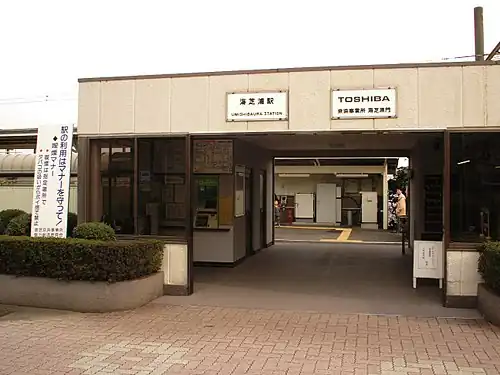 Umi-Shibaura Station (海芝浦駅, Umi-shibaura-eki) is a railway station on the Tsurumi Line in Tsurumi-ku, Yokohama, Kanagawa Prefecture, Japan, operated by East Japan Railway Company (JR East). The station is located on the grounds of Toshiba's Keihin Product Operations, and the only exit from the station is into the company's grounds. As a result, only Toshiba employees with valid employee ID cards and invited visitors are permitted to exit the station. A small park next to the station is open for public use; however there is no pedestrian exit from the station or park and anyone other than authorised Toshiba employees or visitors must exit by using a train.