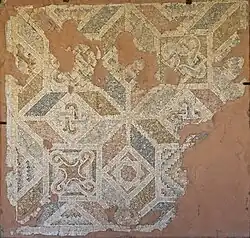 The museum has among its exhibits mosaics and coins that were found in excavations.[9] The museum contains artifacts dating from the Hellenistic to the Islamic period, among the artifacts in the museum are masks, among them is Dionysius mask made of pure white marble, also the museum has statues of gods such as Zeus, Sator and Artemis, among the statues is a statue of a snake made of yellowish white limestone, and a statue of Hermes Arbach made of white marble that is on a pedestal. The museum also contains some Egyptian statues made of limestone and basalt. In addition, the museum contains an inscription of the poet Eribuis on a tombstone made of basalt.[5] The museum also exhibits what was found in tombs from the archeological site of the city, as well as pottey collections such as small jars.[10]