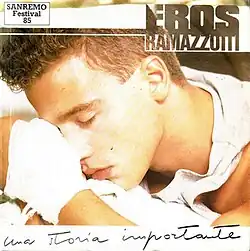 "Una storia importante" ('An important story') is a 1985 song composed by Eros Ramazzotti, Piero Cassano and Adelio Cogliati, arranged by Celso Valli and performed by Eros Ramazzotti. With this song Ramazzotti returned at the Sanremo Music Festival after winning the newcomers competition the previous year;[1] the song placed only sixth, but was the most commercially successful among the competing entries.[2][3] The single sold over one million copies,[3][4] notably selling over 625,000 copies in France.[5]