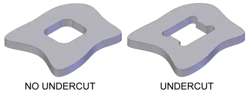 The corners may be undercut to remove the radius that is usually left by the milling cutter this is commonly referred to as a relief.
