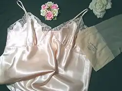 The principal materials which are considered erotic are charmeuse silk (silk woven so that it has a sheen) and satins (such as acetate satin and rayon satin), but other materials with similar properties, such as polyester and spandex are also admired.[9][10]