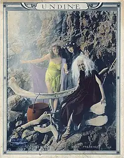 Undine is a 1916 American silent fantasy drama film which featured the athletic actress Ida Schnall in a water-themed story based upon the fairy tale Undine by Friedrich de la Motte Fouque.[2] The film was directed by Henry Otto and produced and distributed by the Bluebird Photoplays division of Universal Film Manufacturing Company.[3] It is not known whether the film currently survives.[4]