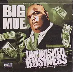 Unfinished Business is the fourth and final studio album by American rapper and Screwed Up Click member Big Moe. It was released on March 18, 2008, via Wreckshop Records, Koch Records and Doc Music Group. It was released posthumously, after Moe's death in 2007. The album peaked at #73 on the US Billboard Top R&B/Hip-Hop Albums.