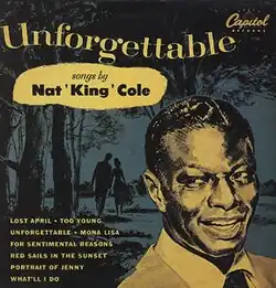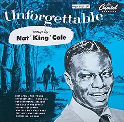 Unforgettable is an original jazz compilation by Nat King Cole. It was initially released on a 10-inch LP in 1952, and it was reissued on a 12-inch LP in 1954.