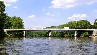Union Avenue Bridge is a vehicular bridge over the Passaic River in northeastern New Jersey, crossing the county line at the town of Rutherford in Bergen County and the city of Passaic in Passaic County.[6] It takes its name from Union Avenue (CR S32) in Rutherford which connects to River Drive (and access to Route 21) in Passaic. The two-lane, four-span fixed bridge which opened in 2002 is 13.2 miles (21.2 km) from the river's mouth at Newark Bay.[7] There is another Union Avenue Bridge traversing the Passaic at Little Falls