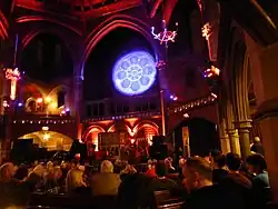 Union Chapel hosts live music, film, spoken word and comedy events. There are around 250 events per year. It was voted London's Best Live Music Venue by readers of Time Out magazine in 2002, 2012 and again in 2014.[1] It has a reputation for excellent acoustics, due to its design.