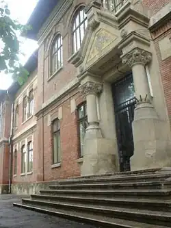 The school library began in 1874, with 45 books donated by pupils. Two years later, a leading citizen of the town organized various events, collecting a large sum for the further acquisition of books. In 1881, the school began ordering French and German periodicals, drawing on funds supplied by town hall. The library, opened to the public in 1907, was damaged during World War I. A literary society donated its collection in 1920,[2] bringing the holdings to 10,000.[1] World War II brought further losses, and in 1948, the new Communist authorities ordered the destruction of "bourgeois" titles. By the 21st century, the library held 33,000 books, of which 6,300 were old and rare.[2]