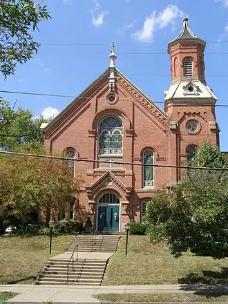 United Methodist Church is a historic church North Washington Street in Millersburg, Ohio. The Methodist Episcopal Church of Millersburg was built in 1871, replacing an earlier building from 1821. It is a Romanesque Revival style standing two stories high with a slate gable roof.[2]