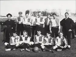 Among the players of the United SC, those who come up most often in the sources are those of the Wynn family. Three members played regularly in the early 1900s: father Henri, goalkeeper, and brothers Edouard and Aubry, who formed the back pair.[1] A certain Aubert Wynn, a player of the third team during the 1901–02 season, was also called to play in the final of that season's Paris championship, during which the club had to face the forfeits of three players of its forward line.[16] There was also a L. Wynn present in the team during the 1905–1906 season.[31] Henri Wynn, the oldest player, was also responsible for composing the teams and setting up the tactics.[16]