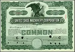 United Shoe Machinery Corporation (USMC) was a U.S.-based manufacturer of various industrial machinery, particularly for the shoe manufacturing industry and monopolized the American shoe machinery business.[1] It was an important federal government's defense contractor during the World War I, Interbellum years, World War II and the Cold war era, which developed and manufactured various land and aircraft armaments, as well as components for the military hardware made by other manufacturers. Founded in Beverly, Massachusetts, its corporate headquarters were eventually relocated to Boston, with key production facilities scattered around Massachusetts. It had subsidiaries in other countries including British United Shoe Machinery in England.