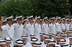 - 6 p.m.:Plebes participate in the "Oath of Office Ceremony" in T-Court and officially become Midshipmen.