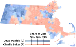 | Massachusetts | Deval Patrick | 55.6% D | Tossup | Leans D | Tossup | Leans D | Tossup | Tilt D | Tossup | Leans D | Patrick (48.4%) |