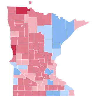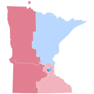 Minnesota was won by Vice President Al Gore by a 2.39% margin of victory, a much weaker performance than President Bill Clinton had in 1996, when he carried the state with 51% of the vote and a 16% margin of victory. Despite winning the state, Gore lost most of the counties and congressional districts in the state. However, Gore won highly populated counties such as Hennepin County, Ramsey County, and St. Louis County by safe margins. In terms of congressional districts, Gore won three districts including the urban 4th and 5th and won the 8th district with less than fifty percent of the vote. Bush overall dominated the rural areas, located in the western and southern parts of the state, and became the first Republican presidential nominee to win Red Lake County since Warren G. Harding in 1920.[2] Nonetheless, he became the first ever Republican to win the White House without carrying Fillmore County. No Republican has won the state since Richard Nixon in 1972, a Democratic streak longer than any other state.[3]