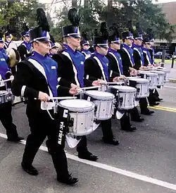 The University of New Hampshire Wildcat Marching Band (UNHWMB or WMB), is the official marching band of the University of New Hampshire. The WMB plays at home games of the Wildcat football team, typically one away game per season, the Dover and Salem band shows, and various parades across New England. The band has traditionally had an equal mix of music and non-music majors and claims to have an average GPA consistently above the university's average.[1] The WMB usually marches 90 to 110 members, depending on the year. Its largest roster in the past decade was approximately 125.