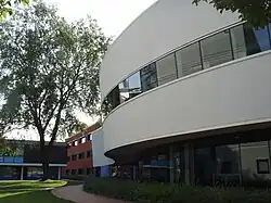 In 1991, the Highfield Planning Group was formed within the university under the chairmanship of Tim Holt.[52] This led to the development of new buildings such as the Jubilee Sports Hall, Student Services Building and the Institute of Sound and Vibration Research. In addition, existing buildings, such as the Hartley Library, were extensively renovated and extended. A new masterplan for the Highfield campus was drawn up in 1998 by Rick Mather, who proposed that the University Road should become a tree-lined boulevard backed by white-rendered buildings.[53] He also contributed some of the newer buildings such as the Zepler and Gower Buildings.[52]