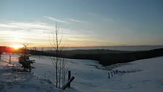 Another division into Upper and Lower Harz is based on the function of the Harz as a natural watershed. On this basis "by taking the Brocken as the mid-point, the Upper Harz includes everything to the west of it; the Lower Harz everything lying to the east. […] All that drains from the western mountains belongs to the catchment area of the Weser, all that drains from those in the east, to that of the Elbe".[4] Heinrich Heine also used the Brocken as the dividing line in his book Die Harzreise ("The Harz Journey") in 1824 and remarked that the "Lower Harz, as the eastern side of the Brocken is called, as opposed to its western side, […] called the Upper Harz".[5] This definition extends the montane Upper Harz eastwards roughly to the state border with Saxony-Anhalt, so that e.g. Braunlage or Hohegeiß may also be counted as lying within the Upper Harz, as well as some high mountain ridges: