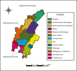 Avignon-lès-Saint-Claude, Chassal, Cuttura, La Rixouse, Lajoux, Lamoura, Lavancia-Epercy, Lavans-lès-Saint-Claude, Les Molunes, Leschères, Molinges, Ponthoux, Ravilloles, Saint-Claude, Saint-Lupicin, Septmoncel, Vaux-lès-Saint-Claude, Villard-Saint-Sauveur, Villard-sur-Bienne