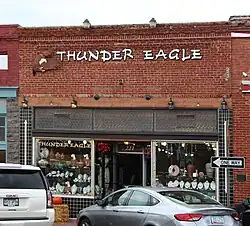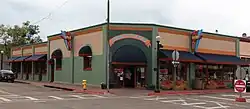 1907 Only Art Deco style building in Historic District[1] Originally five smaller buildings combined and covered with stucco; housed grocery, hardware, department stores and bakery[2]
