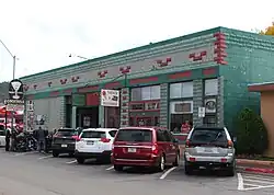 1912 Originally a bank, mostly grocery store, also a dime store. Original tin ceiling[2]