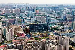 In September 1952, there were two significant policies promulgated at an urban development conference: "construction of key cities in co-ordination with the national economic development programme" and "establishment of urban planning structure to strengthen city development".[9] These policies influenced China's urban planning significantly and at the same time were clearly defined by the main direction of the state – centralised economic and industrial development. During the First Five-year Plan (1953–58), the nation determined to develop 156 national key projects and 8 key industrial based cities.[6] In this period, vast physical development projects such as industrial bases, community facilities and housing for workers were established to achieve national needs and goals. All of these projects were carried out with the aid of the experts from the Soviet Union, particularly in terms of urban economic development and physical urban design. Urban planning at that time was mainly based on Soviet planning principles and the model of the post-war Soviet planning practice. Soviet-style communist planning concentrated on "formalistic street patterns and grand design for public buildings and monuments, huge public squares, and the predominance of master plans".[10] The role of communist planners during this period was to focus on location selection of factories and industrial plants, arrangement of service facilities, design of the layout of industrial towns, functional division of urban land use zones and development of residential districts.[6][7] Historic preservation was not a priority during this period of development. For example, Mao Zedong allowed Beijing's city walls to be demolished despite their historical significance in order to make room for other uses.[11] The bricks from the walls were used in new development projects ranging from homes to a subway system. By the end of 1959, there were 180 cities, 1400 towns and more than 2,000 suburban residential settlements that had been project plans prepared under communist planning.[7]
