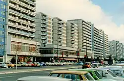 ![]() The skyline of many cities became dominated by standardized apartment blocks, Bucharest | |
